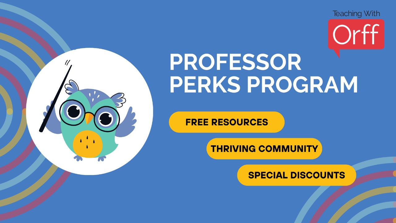 Join our Professor Perks program to receive immediate access to the free resources in your online library plus receive regular emails and ongoing support from Vicki and all your friends at Teaching With Orff